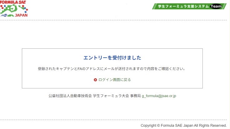 12月15日(月曜日)、学生フォーミュラ日本大会2026へのエントリーが無事完了いたしました。