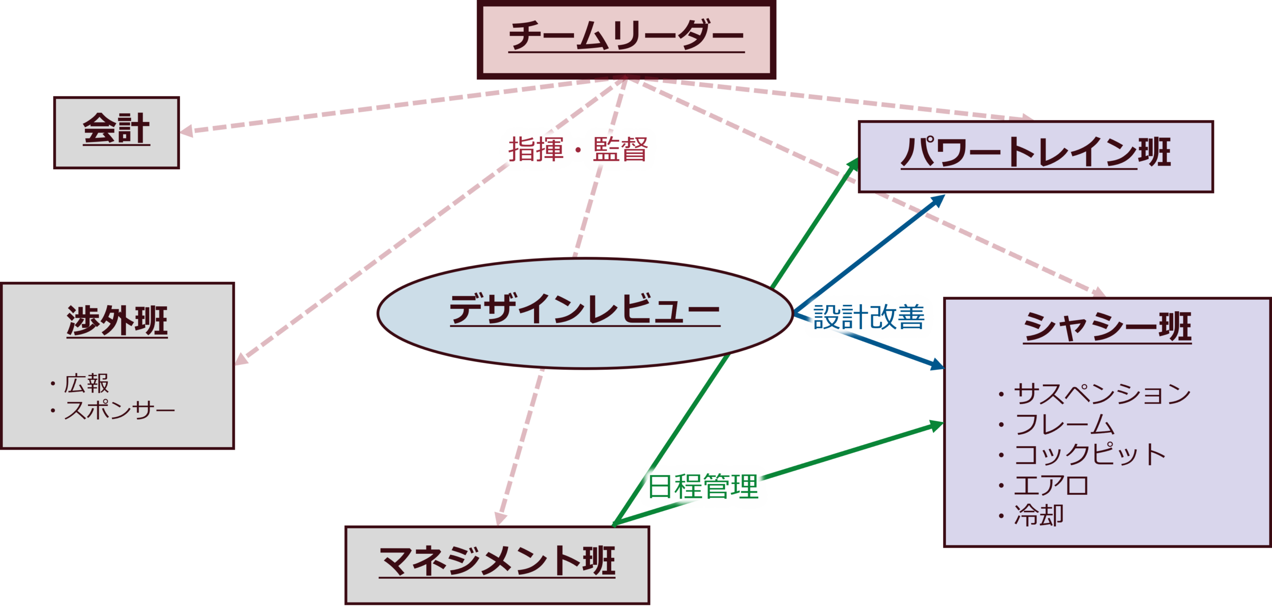 2009年度より旧フレーム班と旧足回り班を統合し、シャシー班としました。